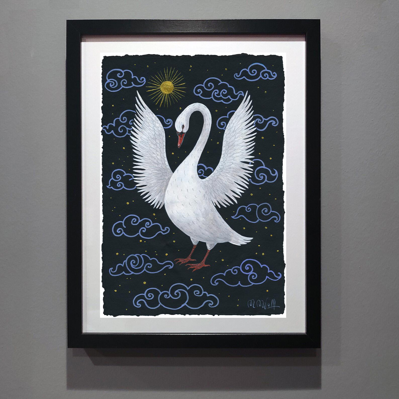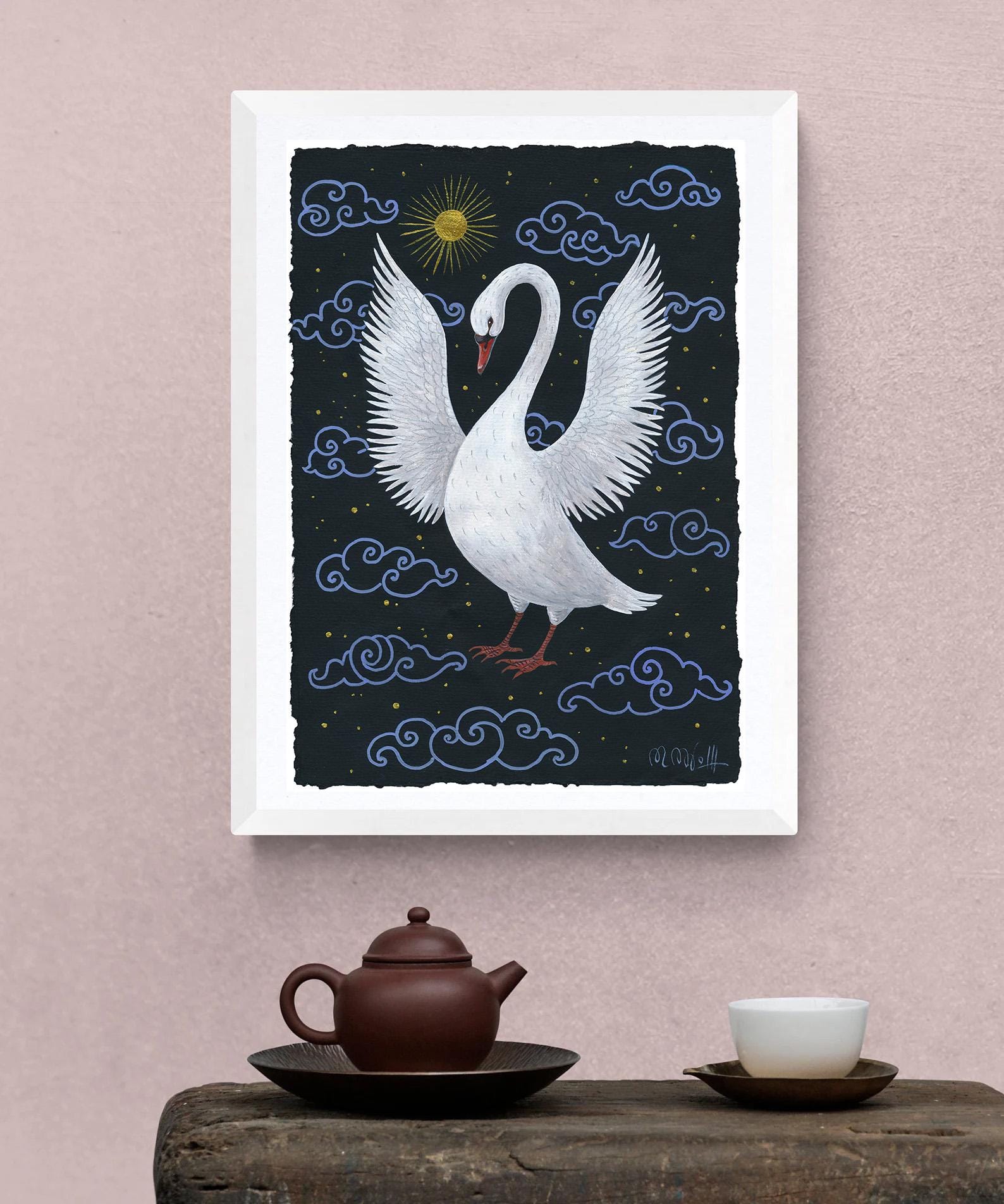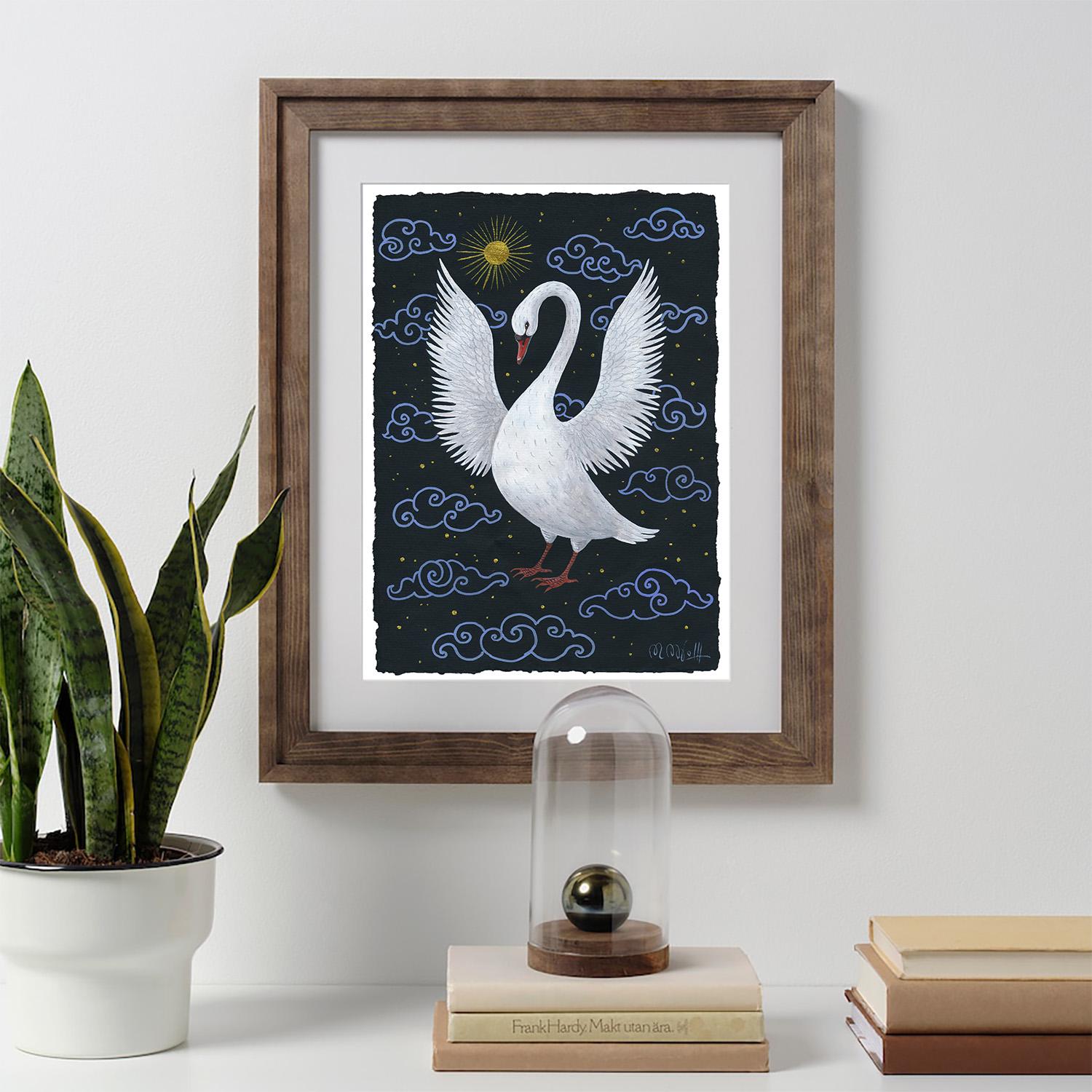 Hand-painted swan artwork on artist paper
