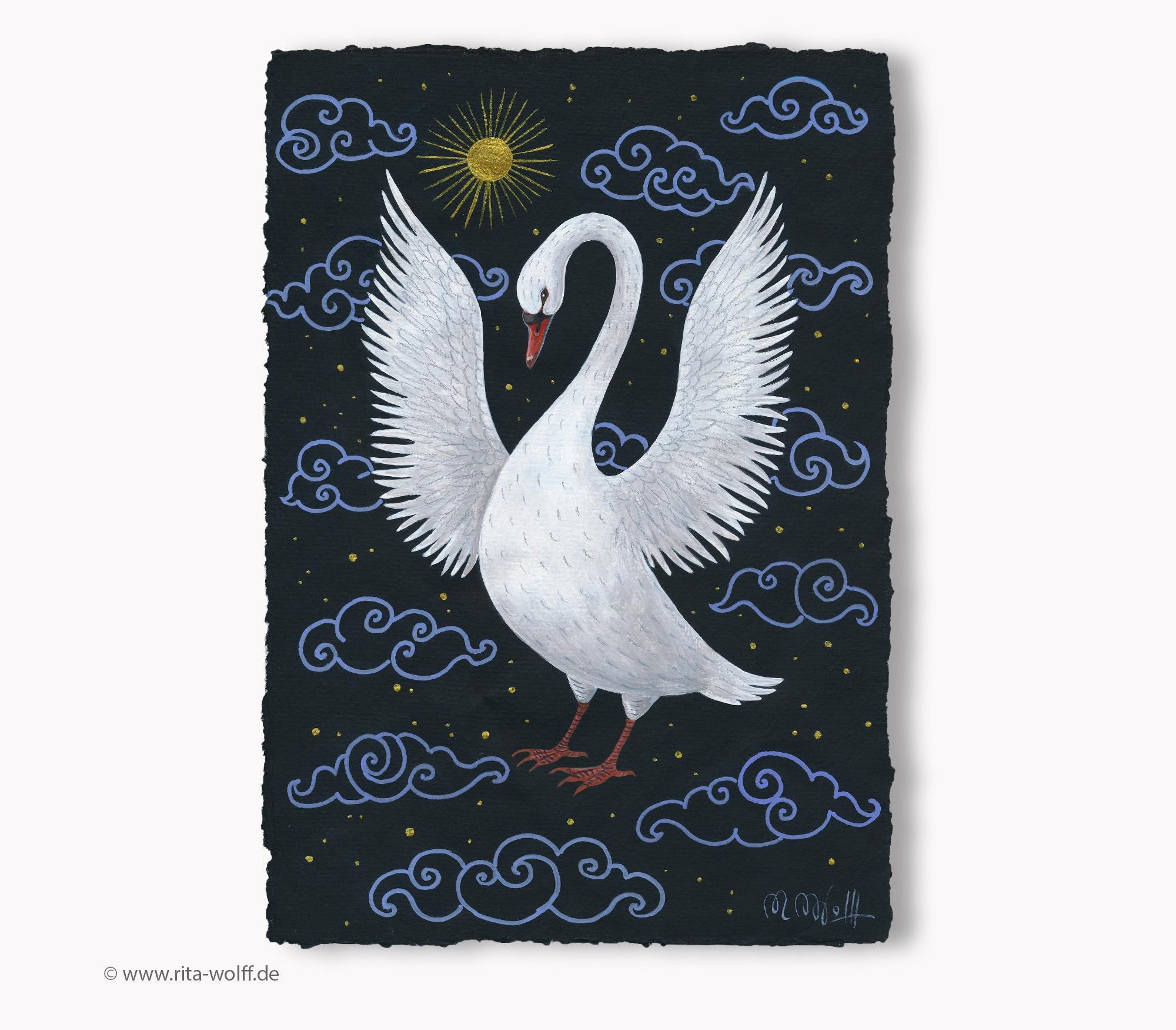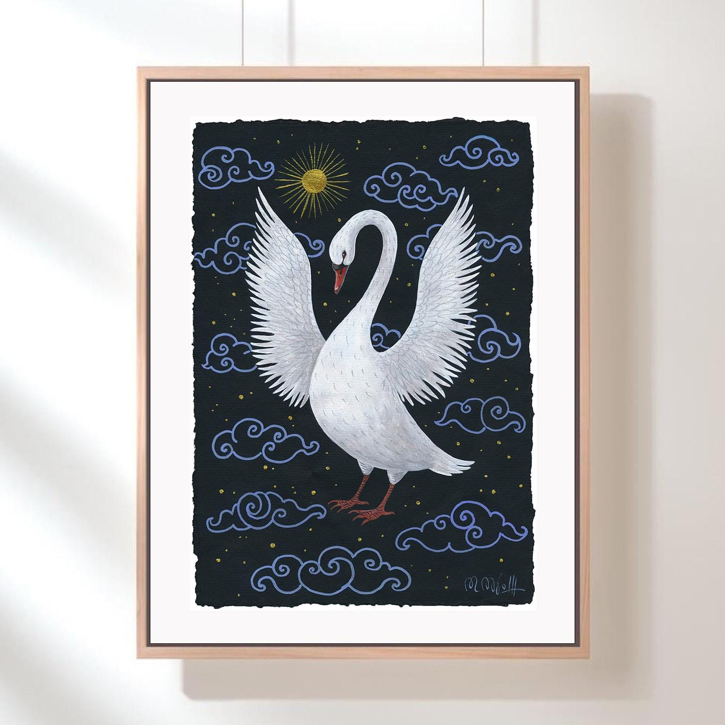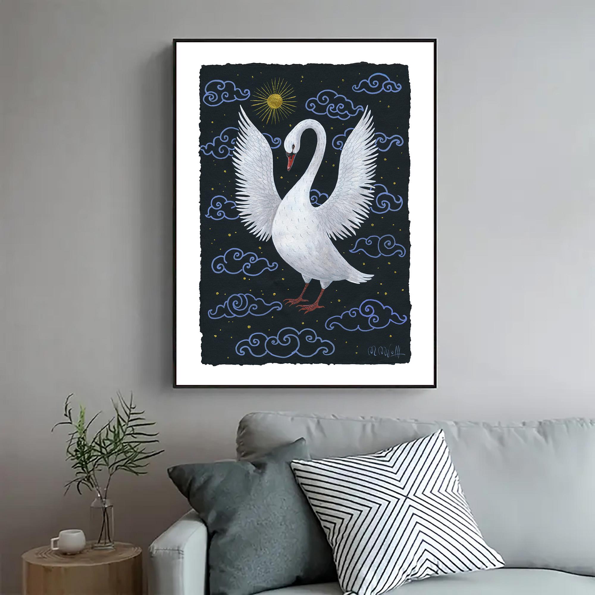 Hand-painted swan artwork on artist paper